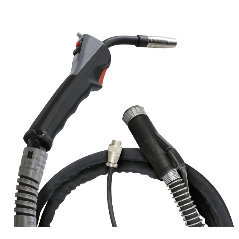 The «Push-Pull» torch has an integrated wire feed motor within the handle. Due to its synchronisation with the wire feeder the welding generator the wire speed is extremely smooth / consistent. This double action is ideal when the very best results are required when welding small diameter or soft