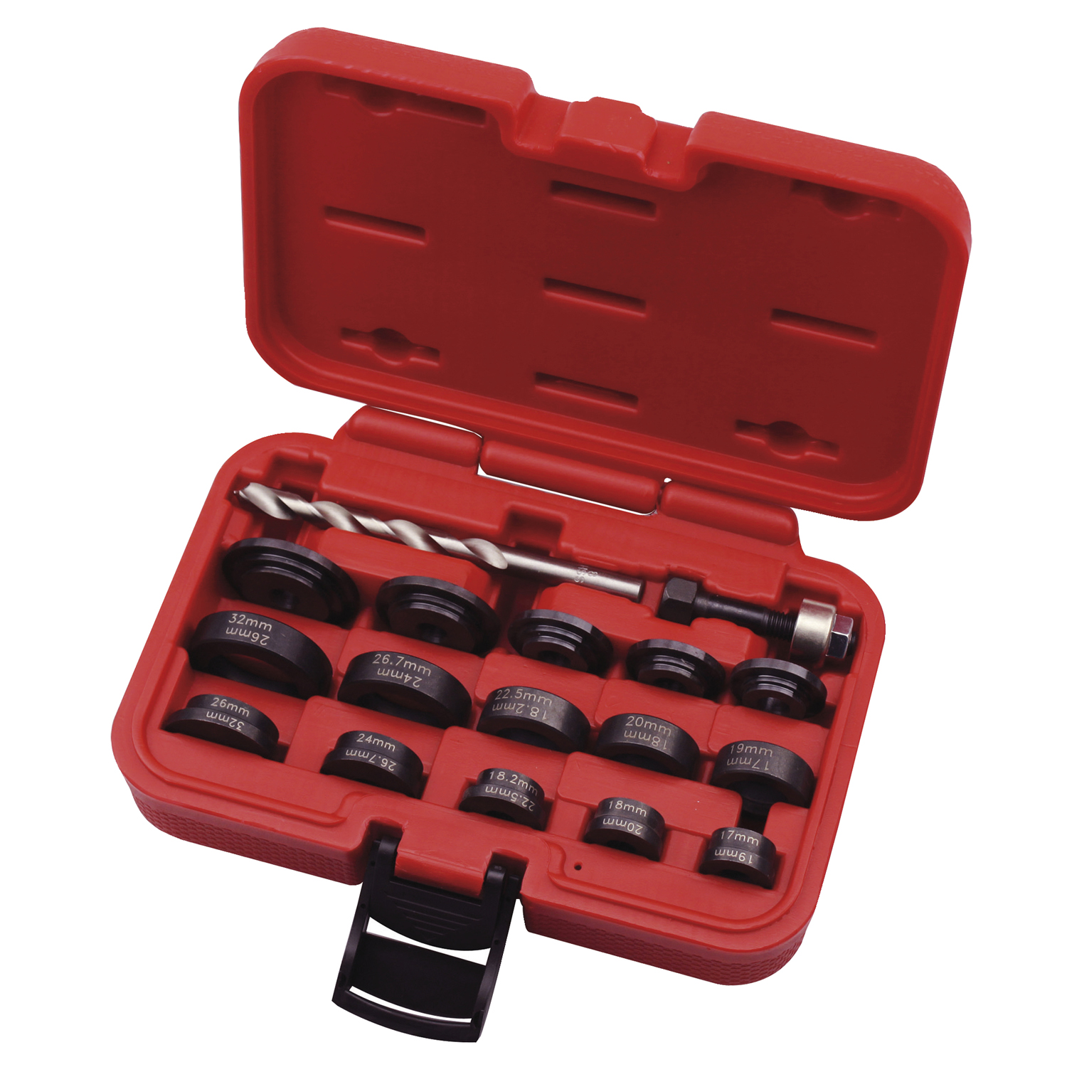 The bumper drilling kit for sensors is easy to use. It allows vehicle replacement bumpers to be perforated cleanly and precisely with the minimum number of tools. This set of punches offers many diameters allowing the drilling of bumpers of many brands.