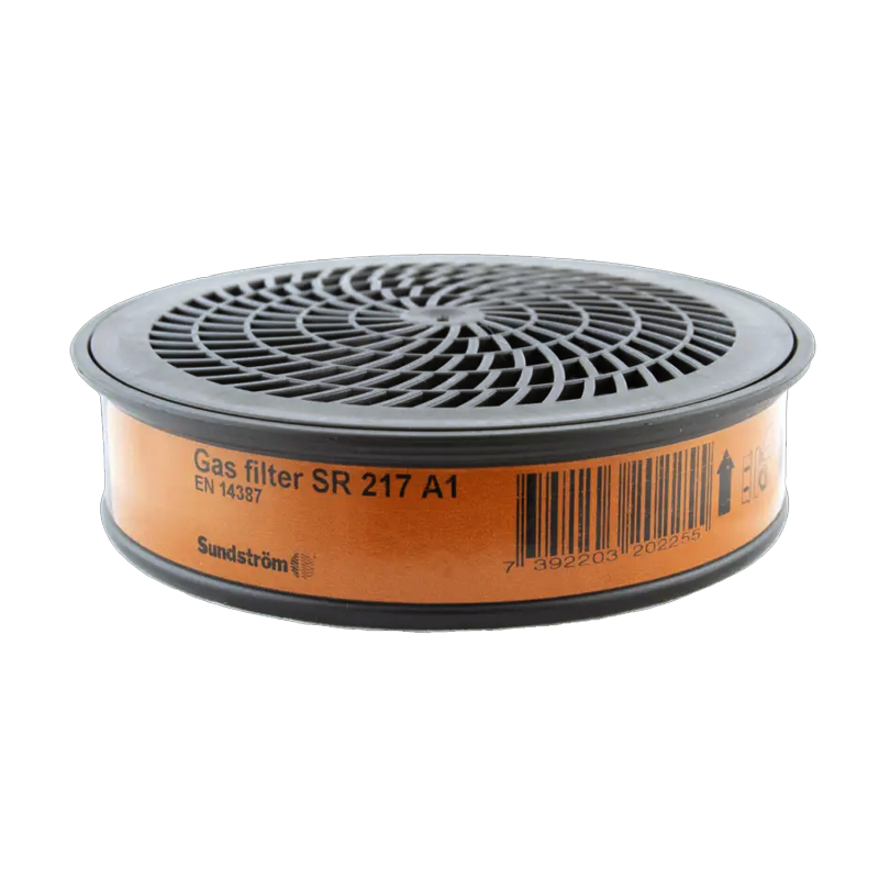 Gas filter SR 217, Class 1 are designed for use with Sundström half masks and full face masks. The filter are of type A and provide protection against organic gases and vapours, such as solvents, with boiling points > +65 °C. The gas filter can easily be combined with particle filter SR 510 P3 R in order to obtain protection also against aerosols (particles), e.g. during spray painting.