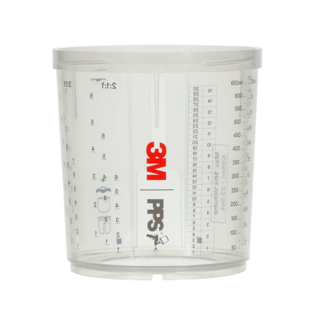 3M™ PPS™ Series 2.0 Cups are hard, reusable plastic cups designed for use with the PPS™ Series 2.0 Spray Cup System. Mixing ratios are built into each cup, eliminating the need for separate inserts. Cups are designed to work with PPS™ Series 2.0 Lids, featuring a quarter-turn locking system without the need for separate collars. A new hard cup is included in each PPS™ Series 2.0 Lid & Liner Kit.
