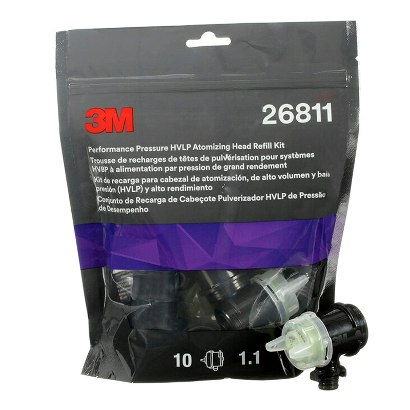 3M™ Performance Pressure HVLP Atomizing Head Refill Kits are available in sizes 1.1, 1.4 and 1.8 atomizing heads for spraying a wide range of industrial and automotive coatings, including high-viscosity coatings, sprayable fillers, high-build primers, primer surfacers, sealers, single-stage top coats, solvent-based paints, waterborne paints and clearcoats.