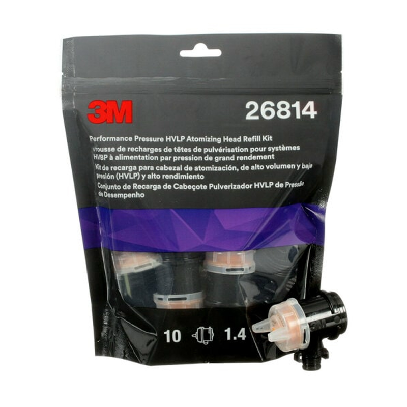 What makes the 3M™ Performance Spray Gun system different is the technology inside the quick-change replaceable nozzles. Because paint and coatings never pass through the body of the spray gun - only through the atomizing head - it's like getting a brand-new spray gun every time you swap the nozzle. Get the pattern control, atomization and transfer efficiency you expect from a premium spray gun - all while helping to drive more consistent spray performance across each job, every day. 3M™ Performance Pressure HVLP Atomizing Head Refill Kits are available in sizes 1.1, 1.4 and 1.8 atomizing heads for spraying a wide range of industrial and automotive coatings, including high-viscosity coatings, sprayable fillers, high-build primers, primer surfacers, sealers, single-stage top coats, solvent-based paints, waterborne paints and clearcoats. The replaceable nozzles are used exclusively with the 3M™ Performance Spray Gun system and attach to a supply hose for continuous, bulk spraying from a pressure pot or pressure tank. The atomizing heads attach to the 3M™ Performance Spray Gun whip hose and are tightly secured to the spray gun with a specially-designed locking collar. No additional tools required for changeouts. Simply remove the nozzle from the spray gun, and either appropriately clean the fluid tip or replace it to keep your spray gun performing like new.