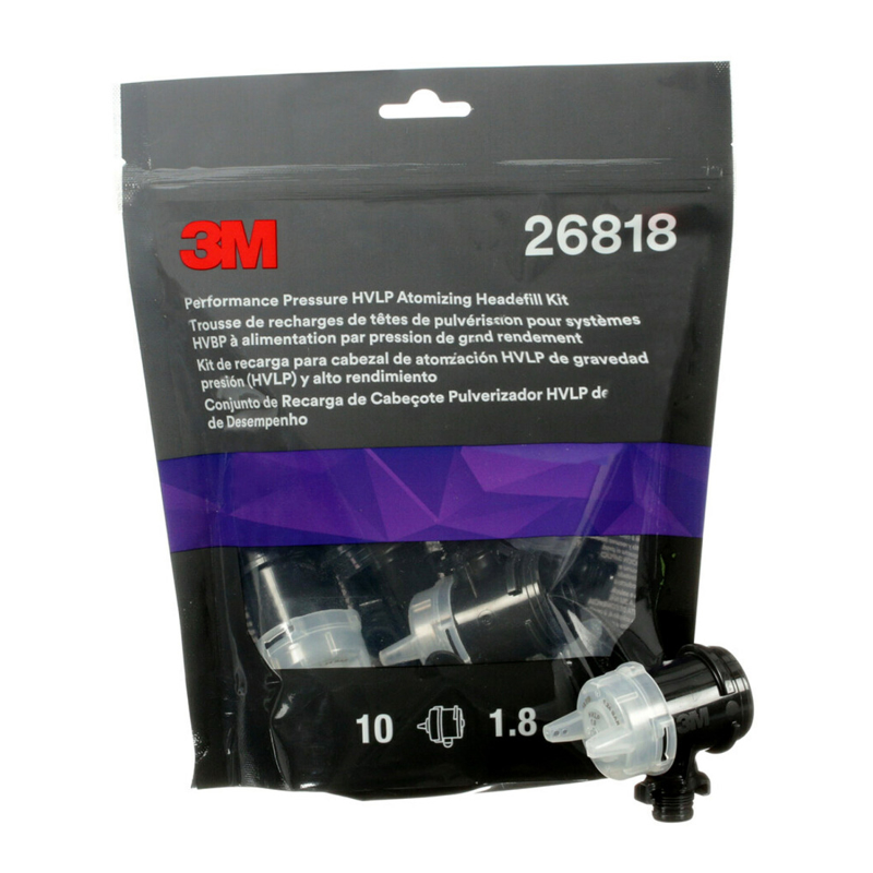 3M™ Performance Pressure HVLP Atomizing Head Refill Kits are available in sizes 1.1, 1.4 and 1.8 atomizing heads for spraying a wide range of industrial and automotive coatings, including high-viscosity coatings, sprayable fillers, high-build primers, primer surfacers, sealers, single-stage top coats, solvent-based paints, waterborne paints and clearcoats.