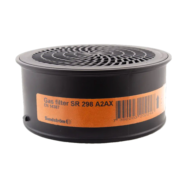 Gas filter SR 298 is designed for use with Sundström half masks and full face masks. The filter is of type A2AX and provides protection against organic gases and vapours, such as solvents. The gas filter can easily be combined with particle filter SR 510 P3 R in order to obtain protection also against aerosols (particles), e.g. during spray painting.