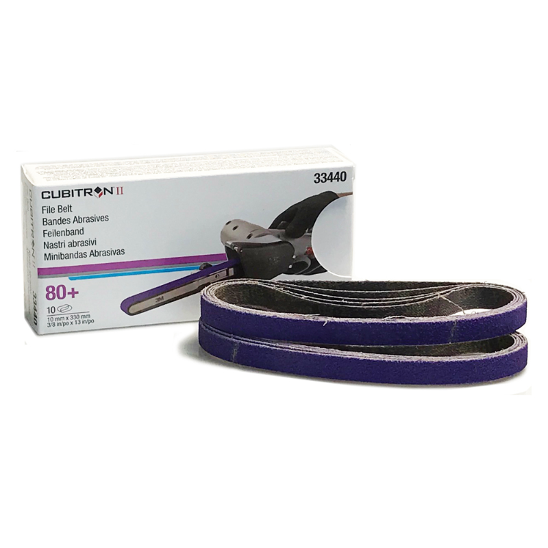 Our 3M™ Cubitron™ II File Belt 786F is a 3M best-in-class abrasive belt, designed for use with the 3M™ File Belt Sander, for tasks like grinding out rivets and removing spot welds. 3M Precision Shaped Grain is resin-bonded on a heavy duty backing for a more consistent finish, cooler operation and two times more belt life. The resin bond and a grinding aid keep this belt cutting cool and sharp.