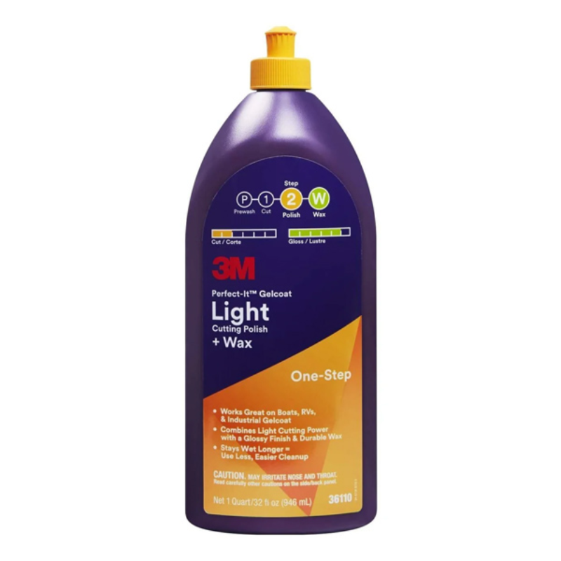 3M™ Perfect-it™ Gelcoat Light Cutting Polish+Wax is 3M's best one-step solution for minor gel coat refinishing. It quickly removes minor defects (light scratches, oxidation, chalk, water marks). It also provides a durable protective wax with a high gloss.