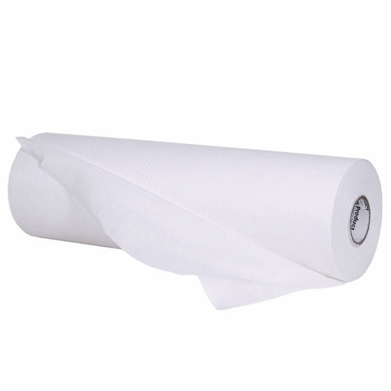 White non-woven surface protection material with adhesive backing.