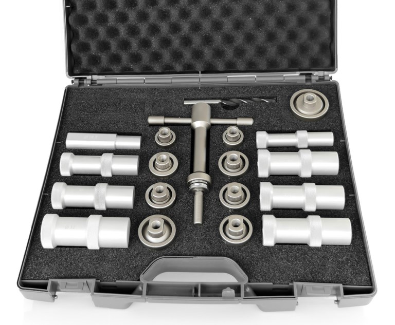 The Press-it hole puncher kit is designed for punching holes into bumpers to mount parking sensors.