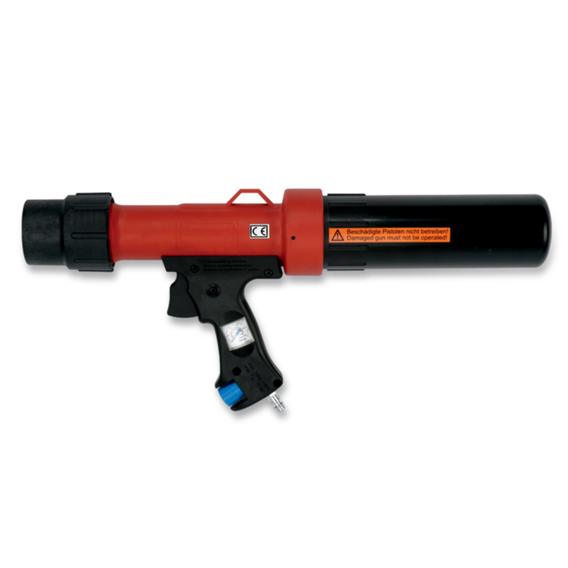 TEROSON POWERLINE II COMPRESSED AIR GUN is a high-pressure dispenser for applying materials from cartridges and foil packs. The pressure gun is a very powerful tool for the continuous dispensing of low- up to high-viscous materials. It is recommended for flat- and wide-stream seam sealing applications. The dispensing tool is a well-balanced lightweight construction. The operating pressure is adjustable at an integrated regulating valve with a manometer.