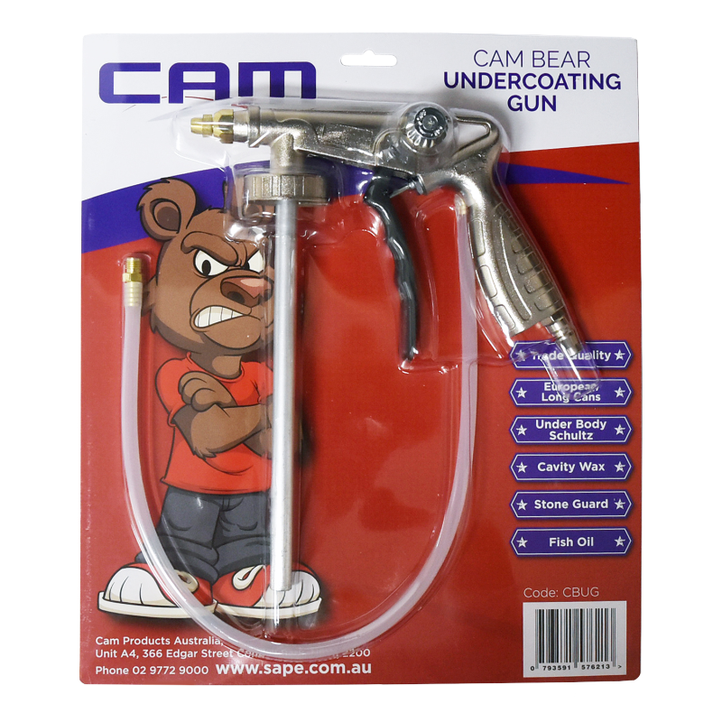 The CAM Undercoating Applicator gun has a die-cast aluminum alloy body with an easy-grip trigger handle. A very durable gun that's excellent for applying automotive rust proofing, rubberised undercoating, chip guard, truck bed liner, and other general-purpose coatings.