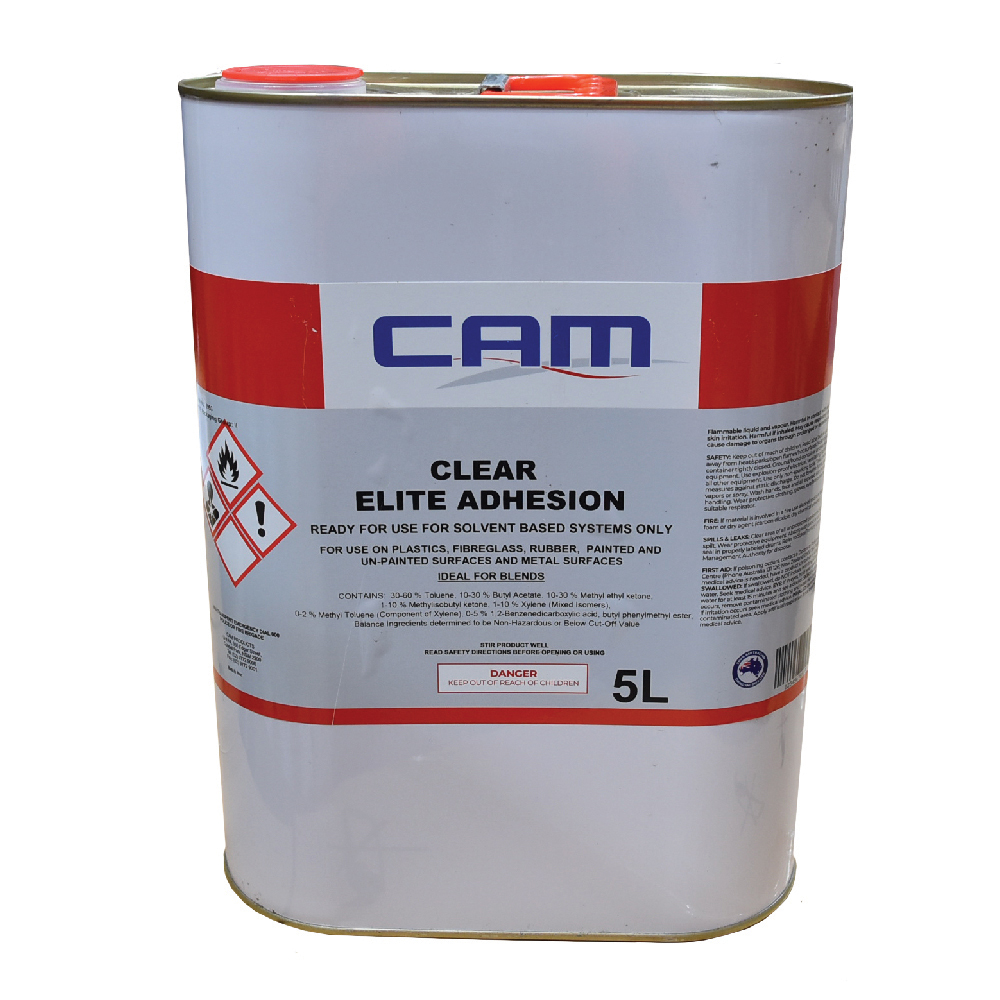 Cam Clear Elite Adhesion Promoter is a solvent-based, single-pack acrylic co-polymer adhesion promoter, designed for use over bare metals, plastics, e-coated, rubber, fiberglass, and painted metal surfaces (including small rubbed-through areas). Elite Adhesion is ideal for blending in over existing painted panels.