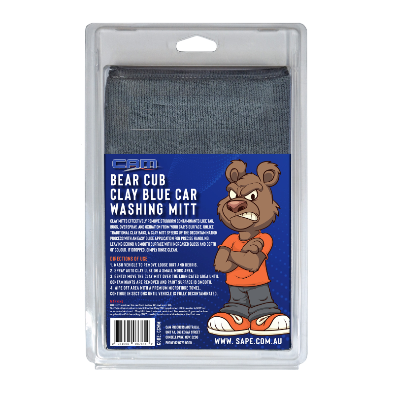 Transform your car cleaning and detailing routine with the CAM Bear Cub Clay Blue Car Washing Mitt. This innovative mitt is designed to effectively remove stubborn contaminants like tar, bugs, overspray, and oxidation from your vehicle’s surface. Unlike traditional clay bars, the Clay Mitt accelerates the decontamination process with its smooth, easy-glide application, allowing for precise handling and a flawless finish.