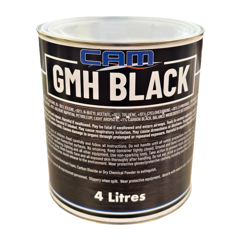 CAM GMH Black is a fast drying nitrocellulose based lacquer topcoat, specifically designed for automotive underbody detailing. It is also suitable as a guide coat prior to sanding preparation of primers prior to application of topcoats.