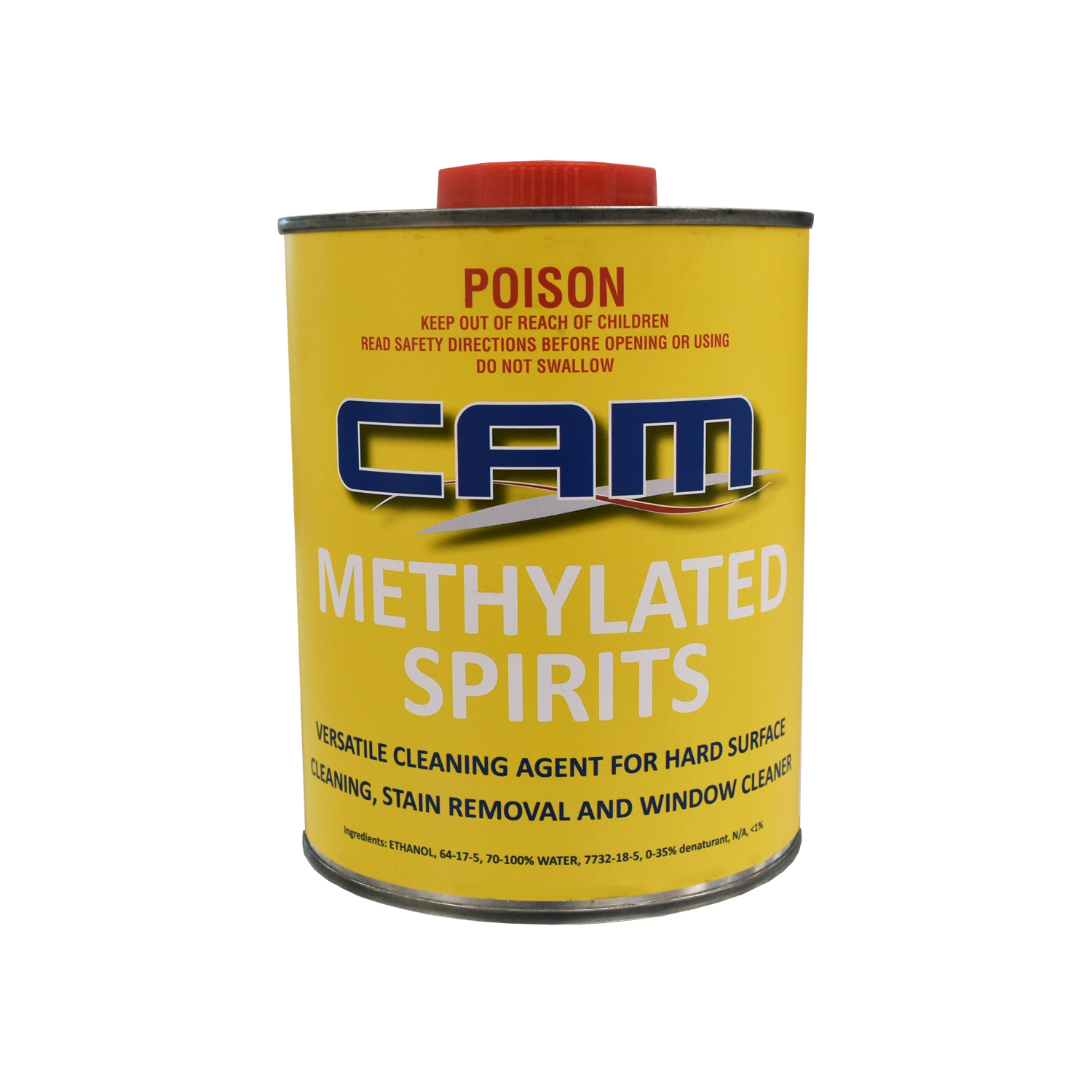CAM Methylated Spirits is a denatured alcohol and a very versatile cleaning agent, commonly used as a hard surface cleaner and disinfectant. It is also useful for window cleaning, stain removal, and removing sticker residue.