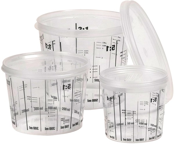 High-quality disposable mixing cup for clean and precise mixing of all paint materials, such as base paints, clear coats, fillers, etc.
