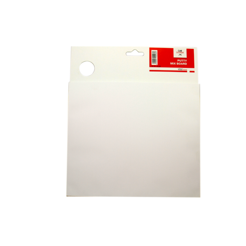 The Carsystem Putty Mix Board is a large putty mixing board with special, resistant paper and offers the perfect basis for the user-friendly mixing of putties. The Putty Mix Board has 100 tear-offs that can be easily torn off and disposed of after each mixing process.