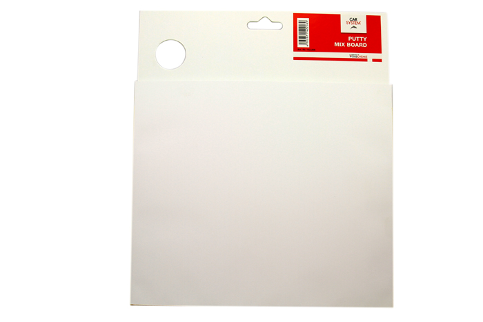 The Carsystem Putty Mix Board is a large putty mixing board with special, resistant paper and offers the perfect basis for the user-friendly mixing of putties. The Putty Mix Board has 100 tear-offs that can be easily torn off and disposed of after each mixing process.