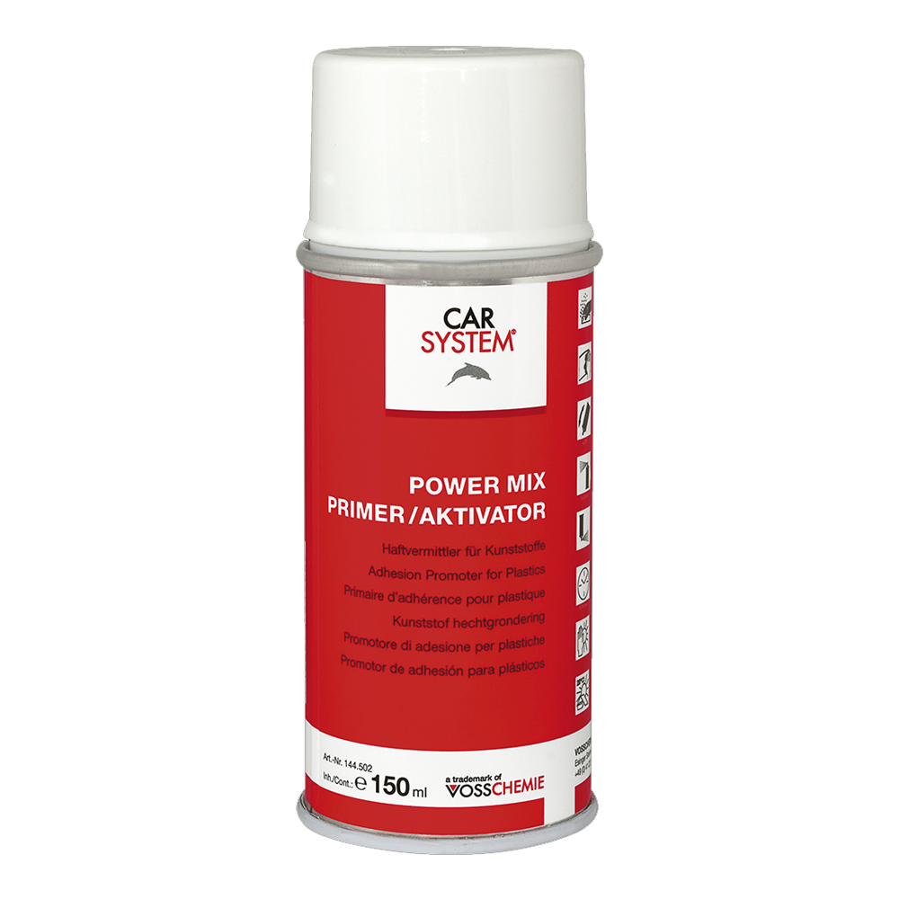 A transparent adhesion primer for plastic parts. It improves the adhesion strength, especially when used to repair plastics that are difficult to bond.
