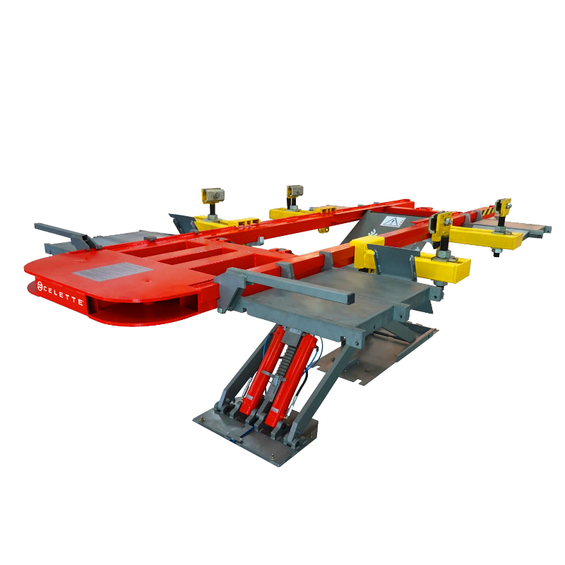 While repairing side damage, the sill clamps on damage side can be removed.The 4 wheels standing on the decking plates allows the car body to keep road conditions at confortable working height without any strength.