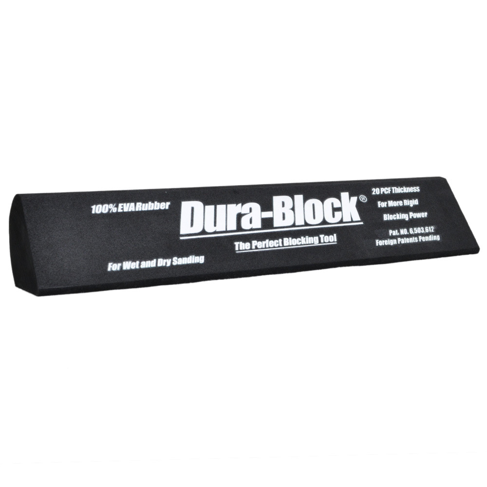 Dura-Blocks are made from closed cell EVA foam. They are CNC machined from a solid material for accuracy and longevity. They are ideal for dry coarse sandpaper sanding, through to final wet sanding, to achieve a perfect finish.