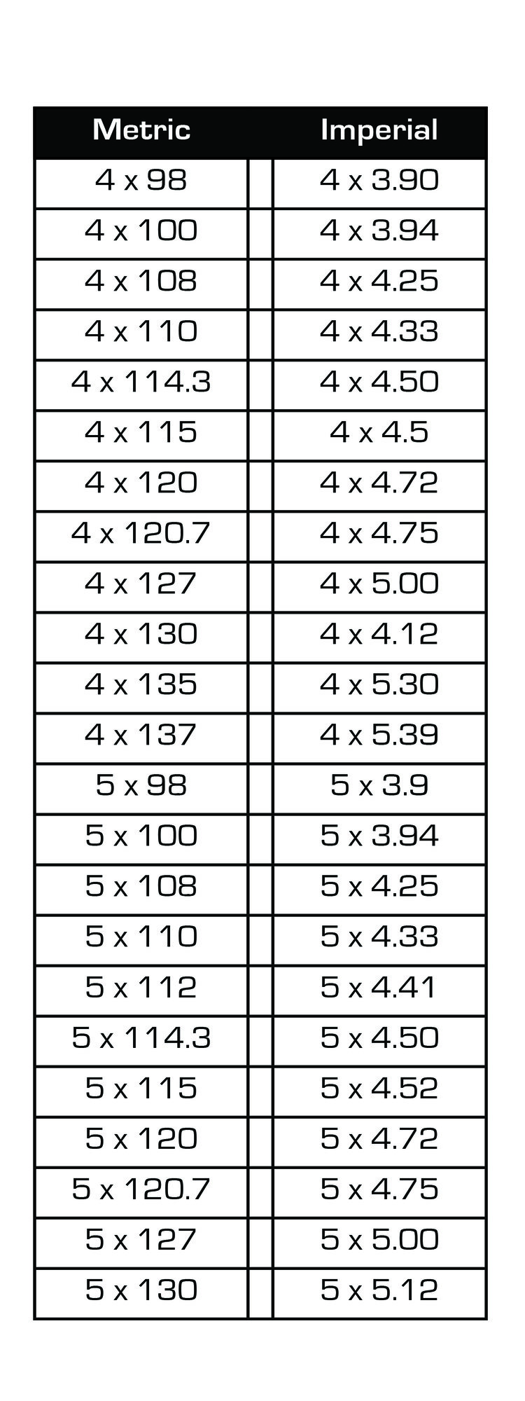Universal lug pattern shop wheel. Fits most standard cars and light SUVs with 4 or 5 bolt patterns and a max center hub of 77 mm.