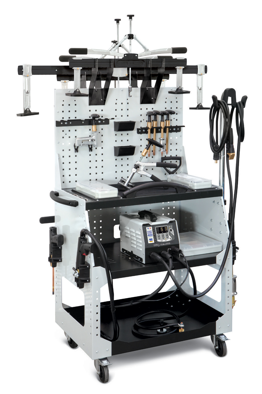 Dedicated for various dent pulling and straightening body shop operations, the GYSPOT EXPERT 400 is a high spec machine able to deliver up to 4500A of power. The welding current and welding duration are set separately for a more accurate control of the impact to galvanise and particularly thin steel sheet.