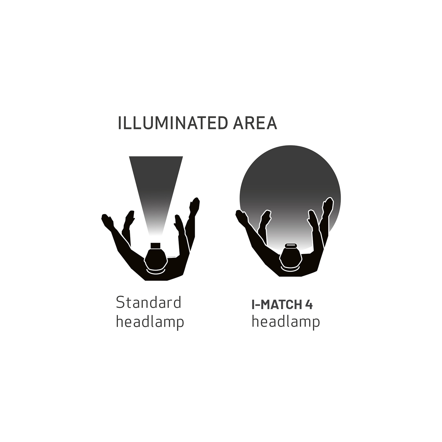 The headlamp provides 250 lumen with a uniform light that illuminates your entire field of view. Compared to the previous model, I-MATCH 4 has an improved user interface for CCT control and sensor activation. In sensor mode, you can easily see when the sensor is activated and turn the light on/off by waving your hand in front of the lamp.