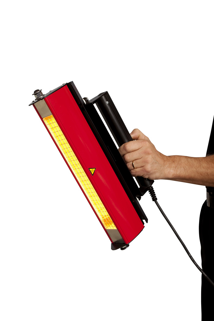 The infrared dryer can either be used as a hand-held dryer or be mounted on a stand.