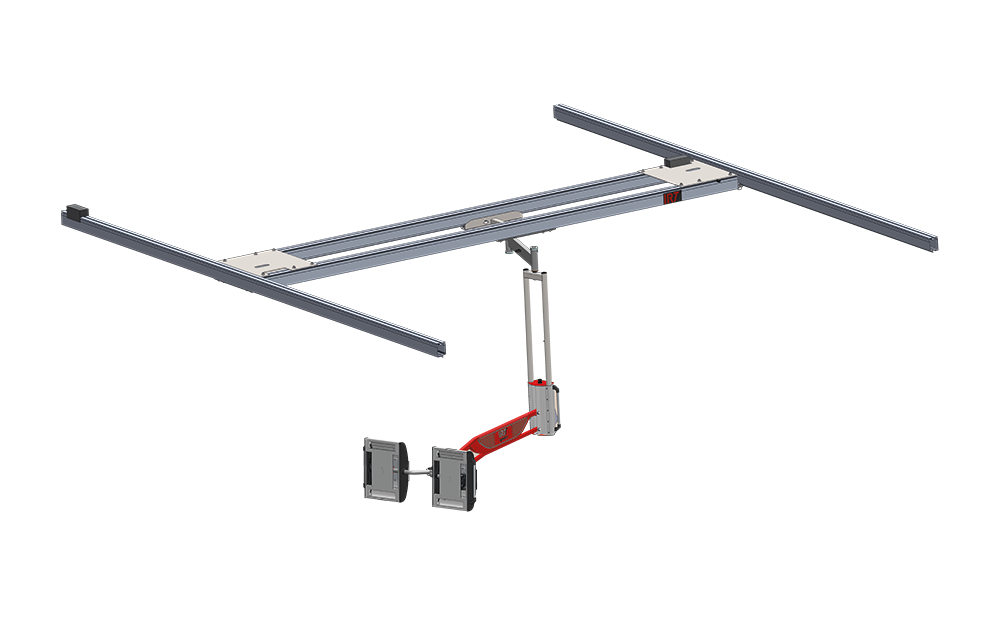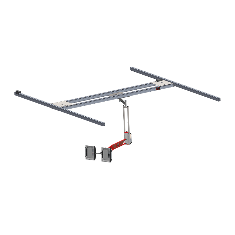 The dryers are suspended in permanently installed rails and is easy gliding and self-balancing, they laterally and vertically in all directions.