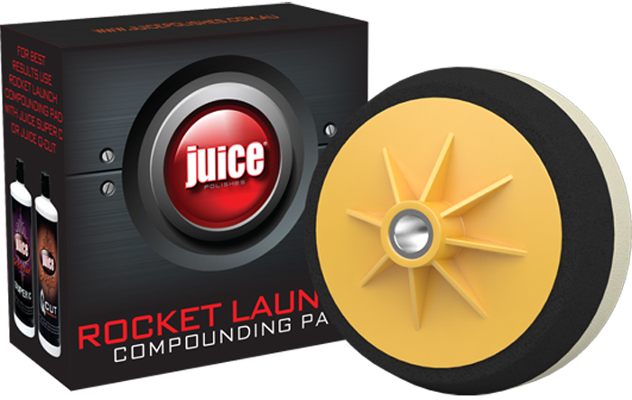 The Juice Rocket Launch compounding pad is uniquely balanced and designed to eliminate swirl by helping the operator to finish with the buff pad in the optimum level position. This is achieved by aligning the black foam wear indicator with the finished surface.