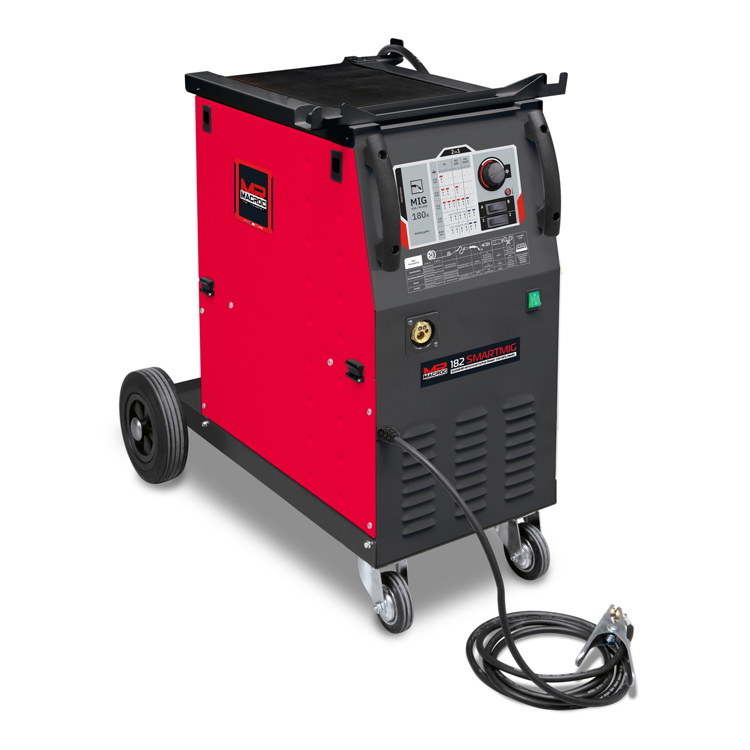 180A Mig/Mag welding machine with SMART control panel to make set up quick and accurate. Works from 35A so suitable for thin metals, up to 180A Maximum. Fitted with high power motor and Euro Torch. Suitable for Steel, Stainless Steel and Aluminium. Takes full size 15kg wire reels. Works with and without gas. Supplied with Euro Torch and Earth Clamp.