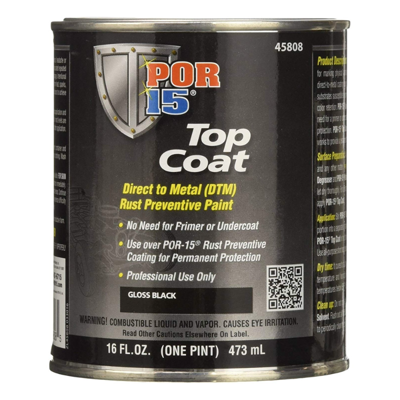 POR-15®Top Coat may be applied directly to a clean prepped metal surface but, when used as a top coat over POR-15®Rust Preventive Coating it provides the toughest, most permanent protection against rust and corrosion ever developed. It won’t crack, chip or peel and will look terrific!
