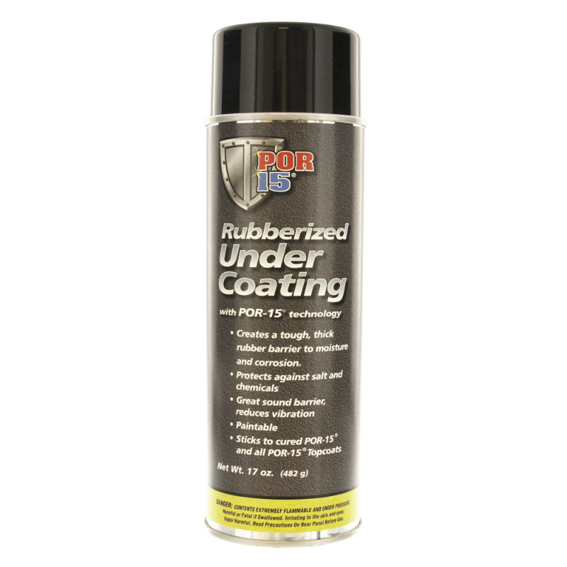 POR-15®Rubberized Under Coating™is a flexible, paintable, black coating. It is the only undercoating withPOR-15®Technologyand will protect against moisture, dust, heat and cold. It's an excellent moisture barrier for application over auto body repairs and creates an effective sound barrier that reduces vibration and deadens sound in wheel wells, quarter panels, fenders and under carriages. Provides superior adhesion to both painted and unpainted surfaces.POR-15®Rubberized Under Coating™has superior resistance to road salt and will resist chipping and abrasions. May be used to insulate against engine and muffler noise, protects against dust penetration and exhaust fumes.