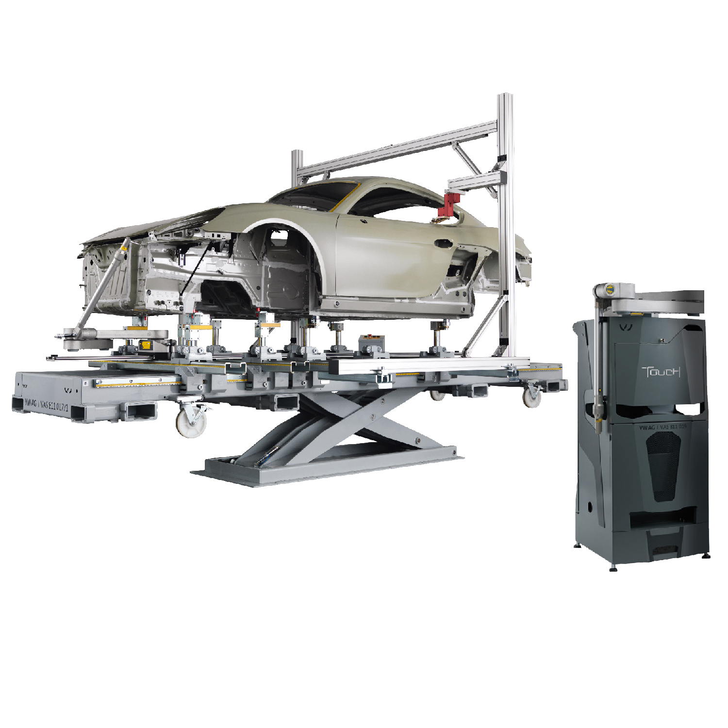 The Touch Electronic Measuring System VAS 811 019 facilitates the measuring and damage analysis within just a few minutes. By employing measuring probes of different lengths, the Touch is the only measuring system available that can reach the most complex measurement points of the vehicle body, including the external and mechanical parts.