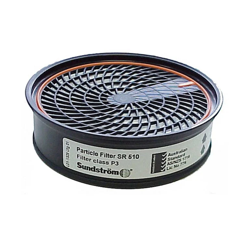 Used against all types of wet and dry particles, such as dust, smoke, aerosols, spray, asbestos, bacteria, viruses and mould. The filter fits into Sundström half and full face masks, as well as the SR700 particle PAPR. The filter can be attached to Sundström non-threaded gas filters. It is also used on front of Sundström's threaded gas filters when used on the SR500 PAPR