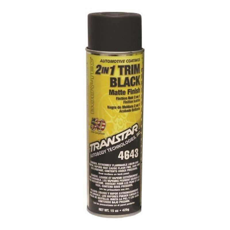 2 in 1 Trim Black is a tough, flexible polymer coating designed to restore bumpers and flexible or rigid trim to their OEM condition. Transtar offers 3 gloss levels, matte, satin and gloss, to match the appearance on most vehicles. It has excellent adhesion to urethane, rubber, metal and treated olefin plastics. It is fast drying, provides excellent adhesion and requires no priming.