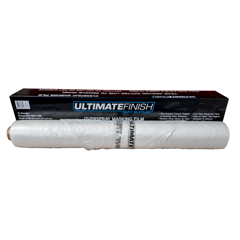 The Ultimate Finish Masking Film 4.8m x 120m 10.5 micron is a professional-grade masking solution designed for clean, reliable coverage. Its exterior corona-treated surface promotes excellent paint adhesion, while the surface-cling technology allows for fast, easy application. Packaged in an Ezy-Flow dispenser with an easy-open fold pattern, it’s built for efficiency on the job. The solvent-resistant film prevents bleed-through, ensuring a sharp, high-quality finish every time.