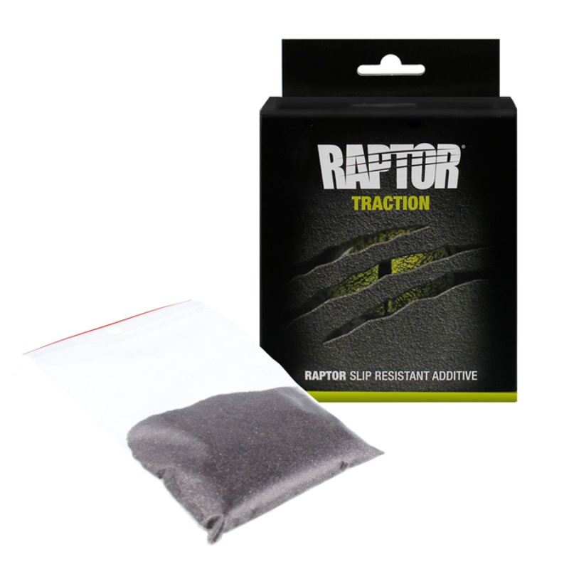 RAPTOR TRACTION slip resistant additive is the latest product in the RAPTOR LINE. It can be added directly into RAPTOR Tough and Tintable Protective Coating bottles prior to spraying. RAPTOR TRACTION is packaged in a convenient 200g resealable bag and will fill one bottle of RAPTOR for a typical slip-resistant application.