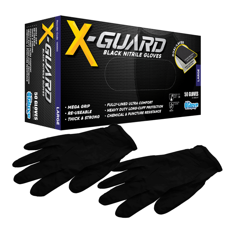 X-guard black nitrile gloves are ultra-strong, thick gloves that offer unrivaled hand protection.